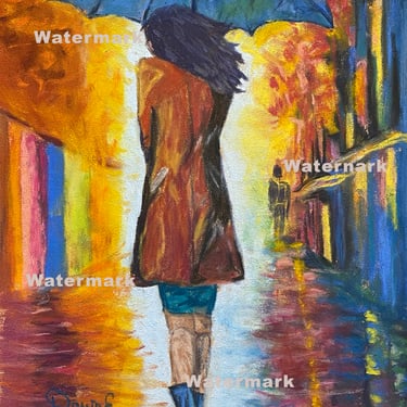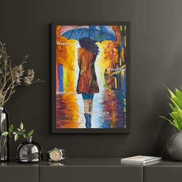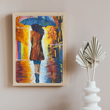 This piece is perfect for those who cherish the poetry of rainy days and the quiet beauty of solitude. It's more than a painting—it's a companion for reflection and a celebration of life's simple pleasures.