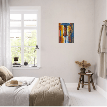 Own "Umbrella Waltz" and let your walls sing with the colors of passion and the dance of light. It's not just art; it's an emotion captured in pastel, a timeless waltz for your soul.